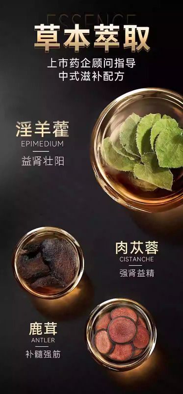 ・草本萃取:淫羊藿、肉蓯蓉、鹿茸